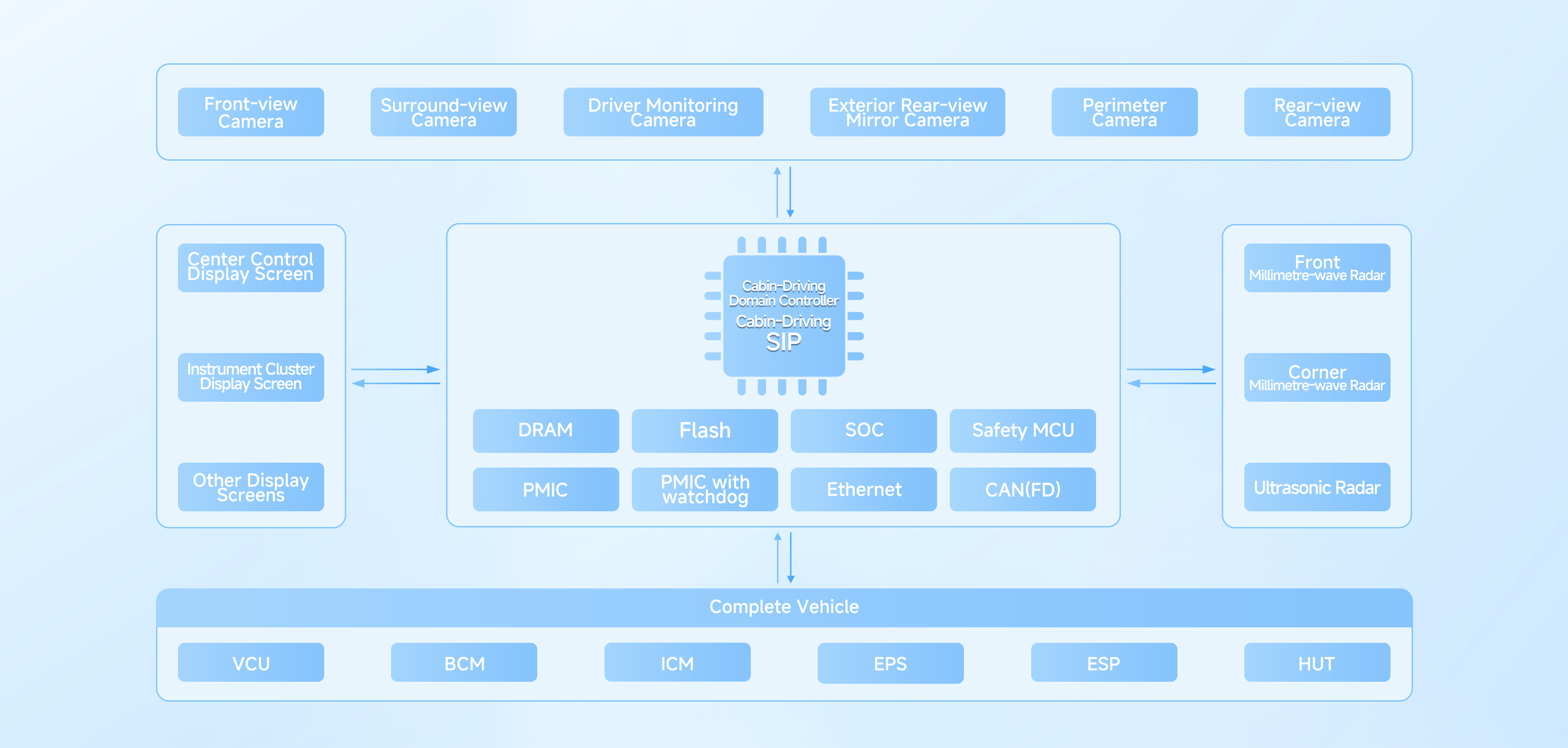 This solution adopts a ONE CHIP architecture, integrating smart cockpit, electronic instrument cluster, T-BOX, APA automatic parking, and L2-level driver assistance. Using single-chip virtualization, it supports multi-OS system operation, consolidating cockpit and driving domains to help reduce costs and improve efficiency.
