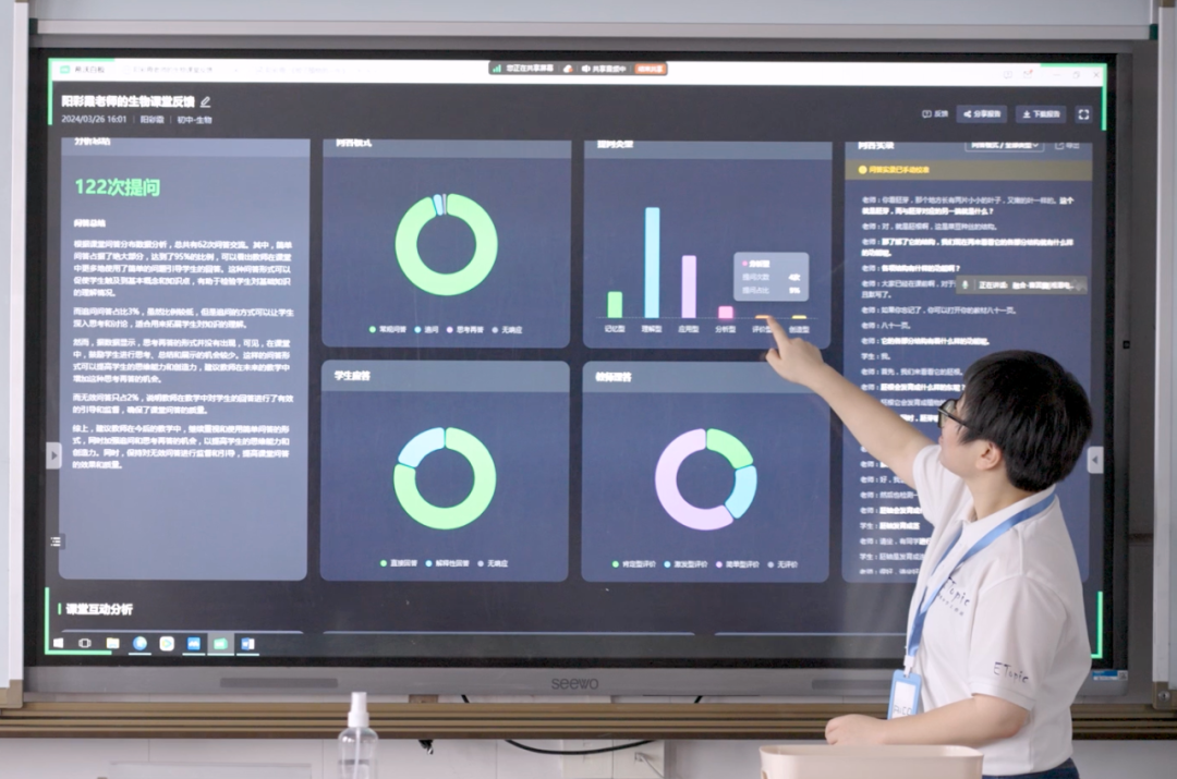 基于希沃自研教学大模型,系统还能从师生互动、新课标落实等维度,为每节课生成个性化总结与改进建议,为教师教学反思和教研组精准教研提供扎实支持。