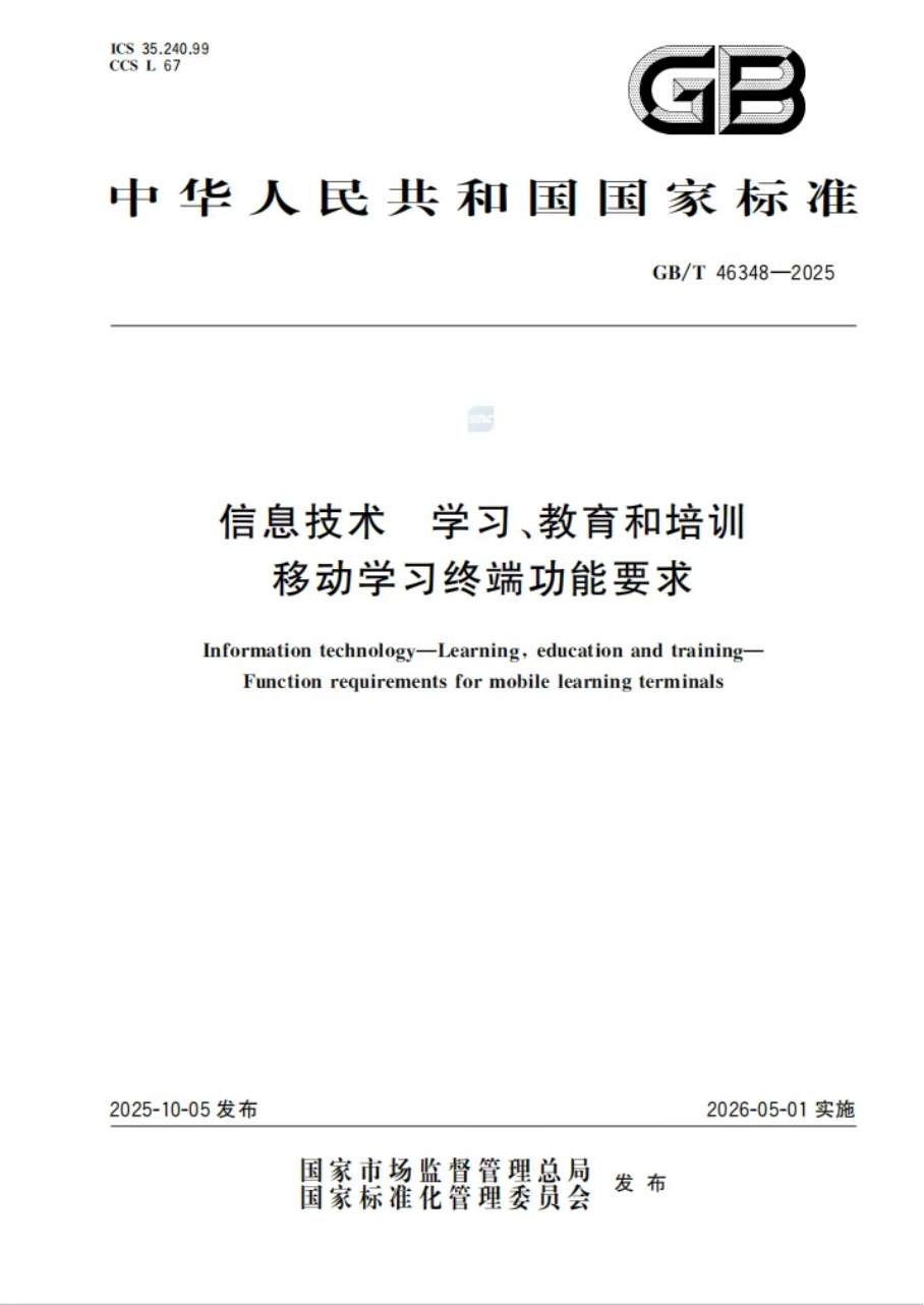 本标准对移动学习终端在通用功能、护眼性能、数据互通及多场景适配等方面提出了系统性要求,旨在确保其能满足多样化教育场景的应用需求。此标准将于2026年5月起正式实施,将为终端制造商的产品开发与教育机构的数字化方案设计提供权威依据,为构建科学、健康的移动学习环境奠定坚实基础。