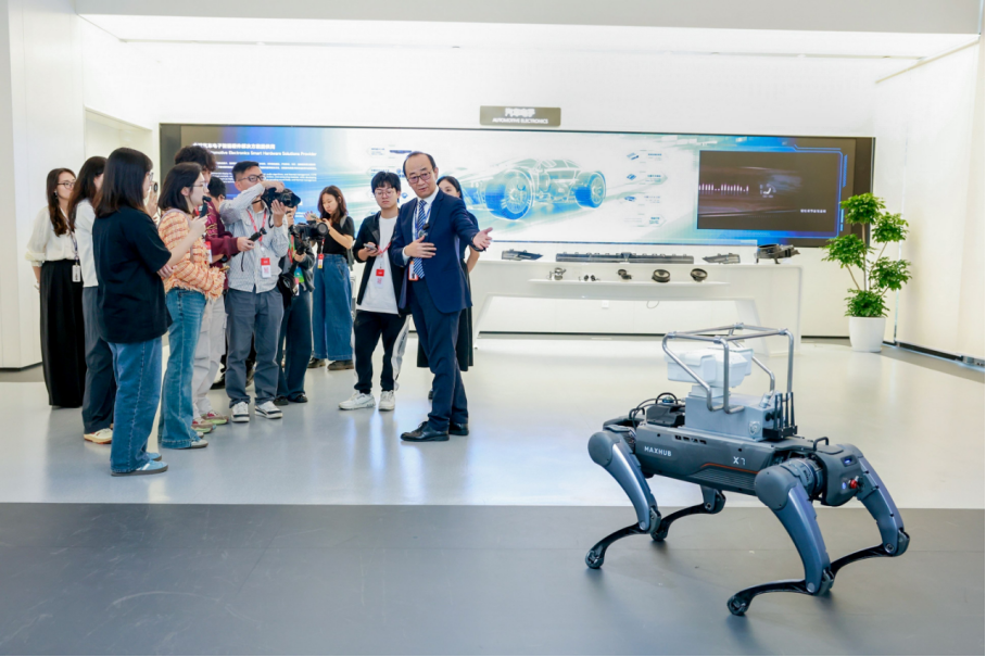 11月12日,在广州市人民政府新闻办公室的组织下,包括人民日报、广州日报在内的多家全运会媒体记者走进篮球赌注软件app,亲身体验智慧体育创新成果。记者们通过探访智慧展厅与员工健身房,近距离体验了MAXHUB四足机器人、智能柔性机械臂等一系列创新产品。