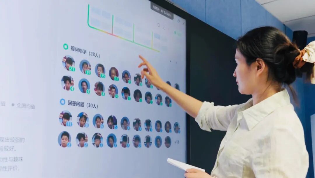 “你提问,他们只是看着你,不举手,也不开口。”黄婷婷回忆道。转机出现在她使用希沃课堂智能反馈系统后的“课堂热点图”功能后,那些隐藏在集体沉默下的个体才清晰显现。她注意到,在其中一个参与远程课堂的教学点里,有个男孩,一整节课,手都没抬过一次。
