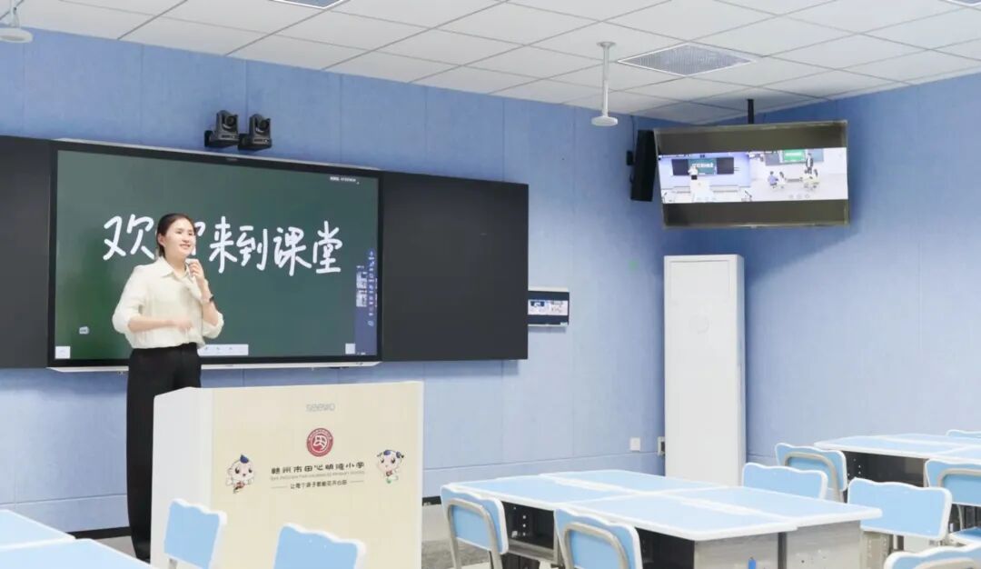 清晨的阳光透过薄雾,洒在赣南连绵的山峦上。田心明德小学的录播教室里,黄婷婷轻轻点击“开始授课”。瞬间,她的笑容出现在一百多公里外几个山区教学点的屏幕上,音响里传来孩子们清脆的欢呼:“是黄老师!”